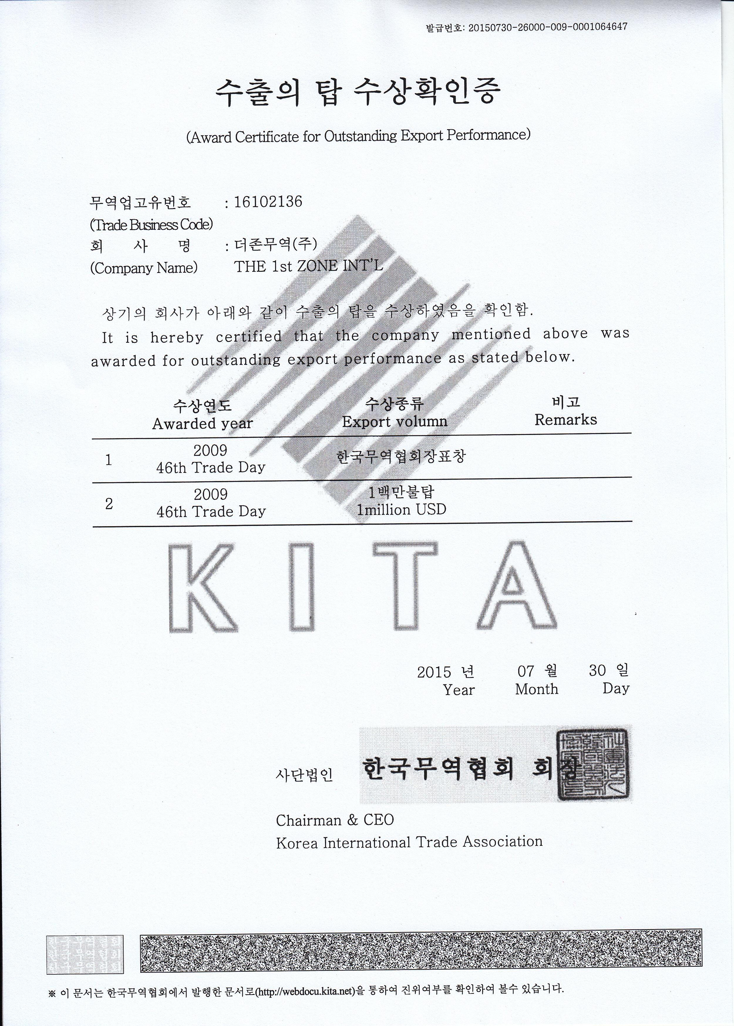 Outstanding Export Performance(KITA) 관리자 2018-09-20 13:36:10 view : 2652 Outstanding Export Performance list PrevAward (MAFRA)2020.01.06 NextAwards(KITA)2018.09.20